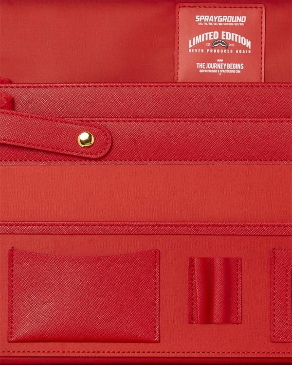 Customized Red Satin lining with Embossed Shark logo and Vegan leather trims