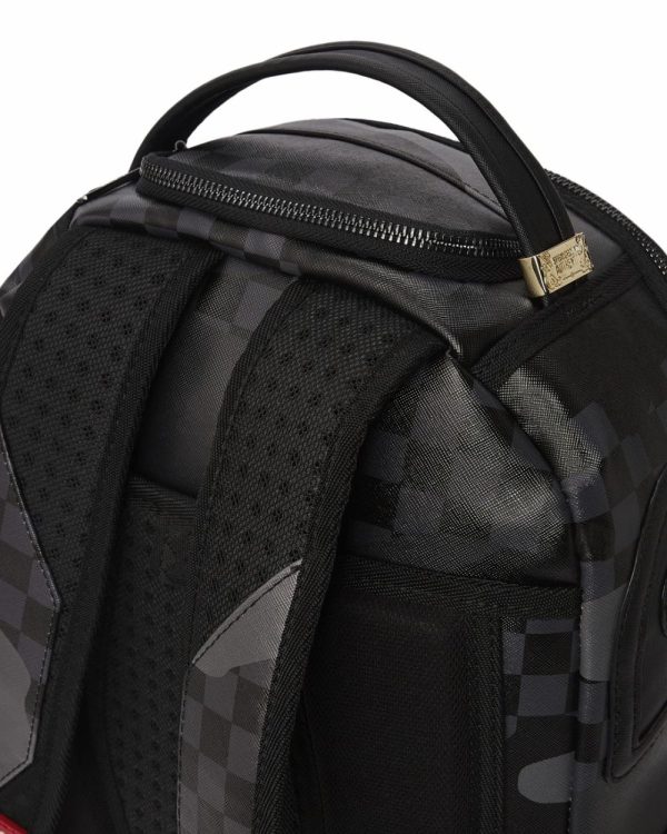Dimensions: 18″ x 6″ x 11.5″ • Front zipper pocket • Side pockets • Zippered Stash pocket • Separate velour sunglass compartment • Ergonomic mesh back padding • Adjustable Straps for custom sizing • Red zippers with metal hardware • Metal “Sprayground Authentic” badge • Slide through back sleeve connects to carry-on luggage to free your hands