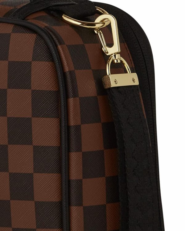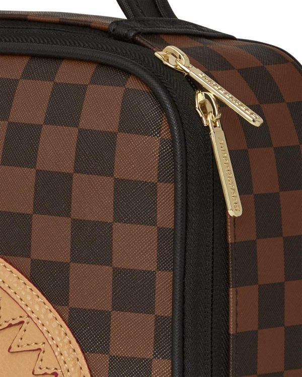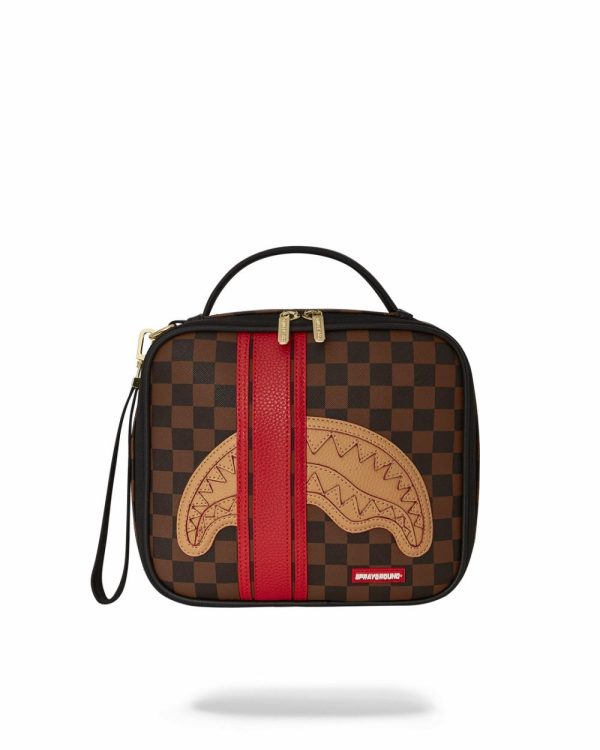 Dimensions: 8.5″ x 3″ x 8.5″ • Double zipper opening • Top handle • Removable side handle • Red zippers with metal hardware • Zippered stash pocket