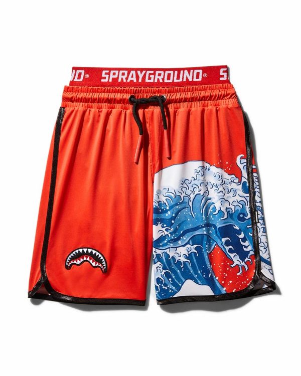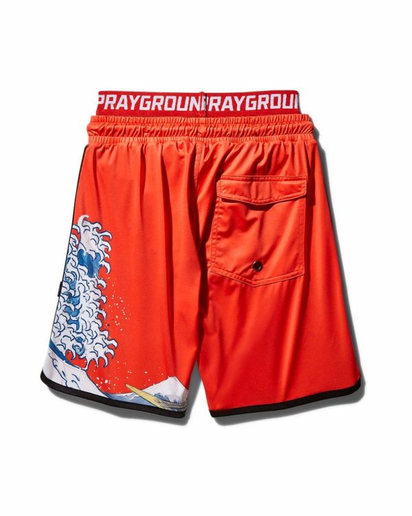 Kids Japan Wave Swim Trunks Red | Adult SPRAYGROUND Sale Swimwear