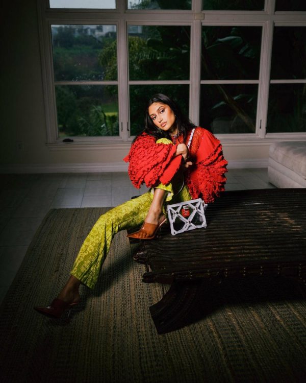 Pouch with removable wristlet strap, Handle on front panel, Zip Closure, secret stash pocket on side seam