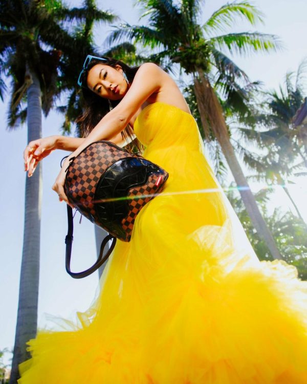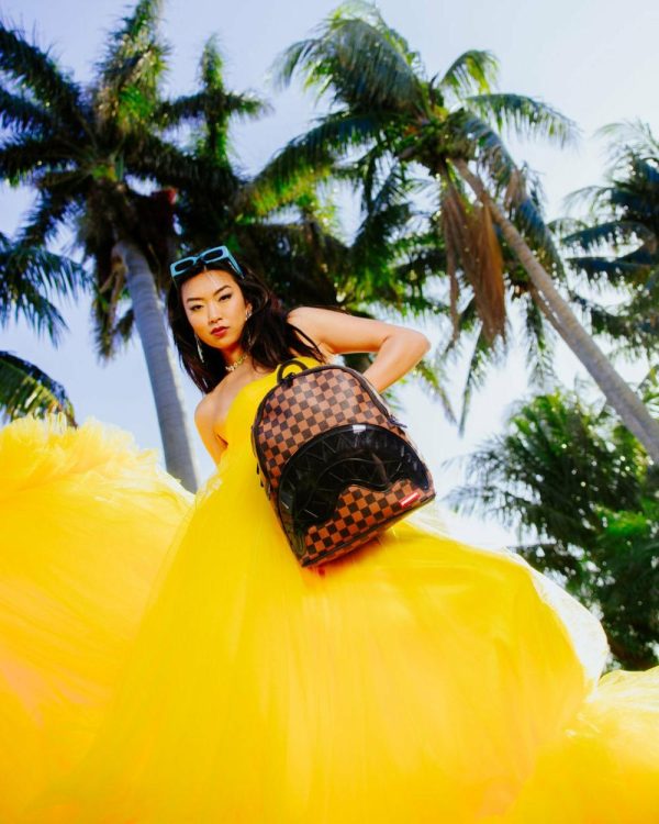 Dimensions: 10″ x 5″ x 11.5″ • Two large main zippered compartments • Side pockets • Zippered Stash pocket • Adjustable straps for custom sizing • Gold zippers with metal hardware